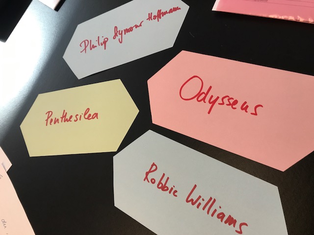 Was hält Penthesilea vom Gesetz und wieso will sie vor ihrem Auftritt noch dem Achilles das Lächeln vom Gesicht reissen? Was denkt Odysseus über die Sandwiches von Penelope, wenn sich die Weiterfahrt des Zuges wegen Steinschlag verzögert?