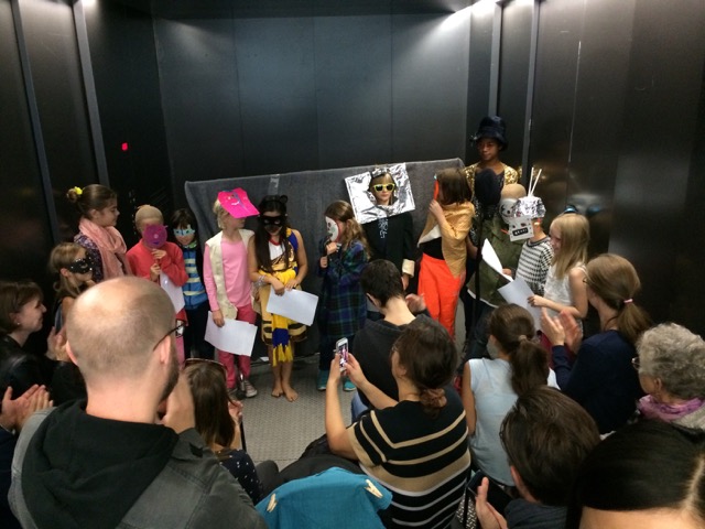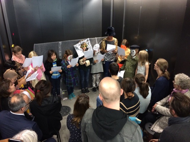 Der Lift der Kunsthalle wurde zur kleinen Guckkastenbühne umfunktioniert, das fahrende Kleinsttheater war proppenvoll, ein grosser Spass!