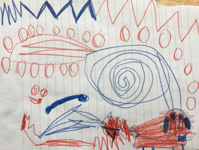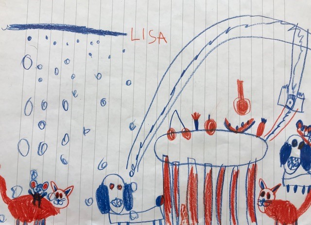 Und die Jüngste des Nachmittags, Mia 6, malte und baute zwei Geschichten mit dem, was da war… (siehe Fotos):