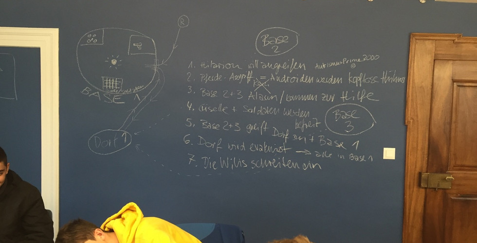 Die Komplexität des Überfalls der Menschenrevolutionäre auf die Homebase der Androiden ist, nun ja, plättend. Doch die Klasse 3Ab bleibt an der Laserkanone und lässt sich durch nichts aufhalten, die Geschichte fertig zu bekommen.