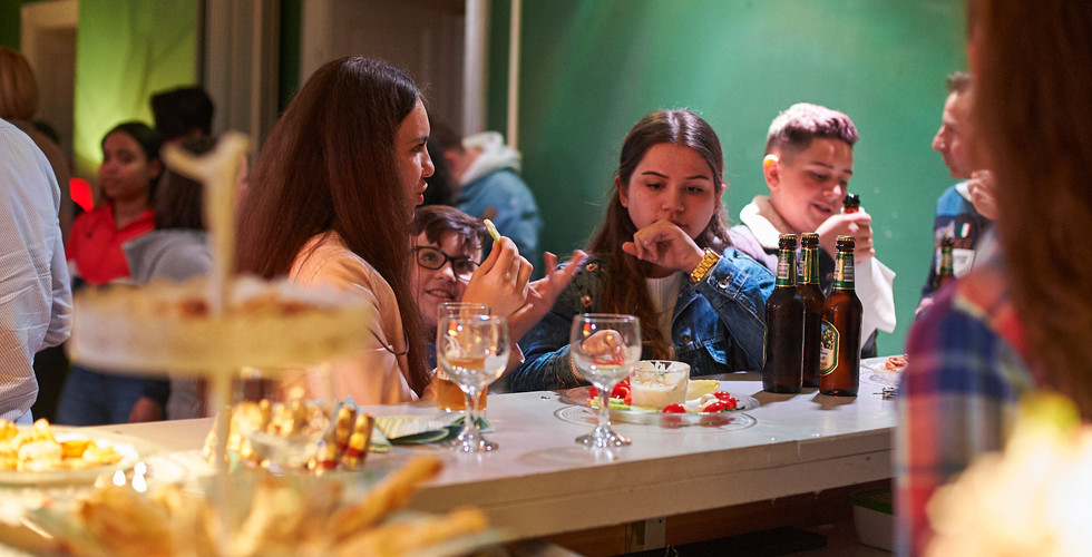 Nach diesem informativen Einstieg wurde es dunkel im Saal. Jetzt lauschten alle gespannt dem Hörspiel "Sabotage in der Seidenfabrik". Darauf folgte ein köstlicher Apèro mit von den Jugendlichen selbstgebackenen Leckereien.