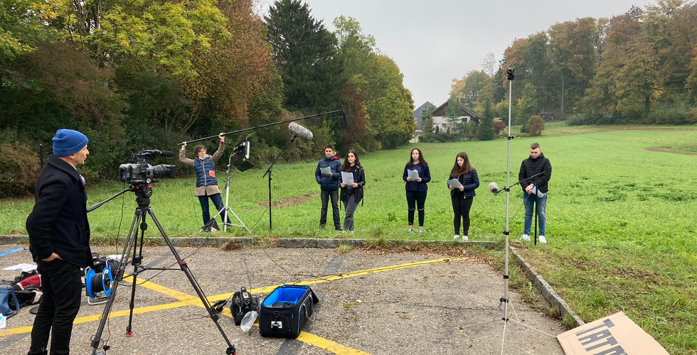Die Klasse A3a hat gleich 4 Drehbücher geschrieben und heute wurden sie mit Karim Patwa, der nicht nur als Schreibcoach die Klasse unterstützt hat, auf offenem Feld aufgenomen.