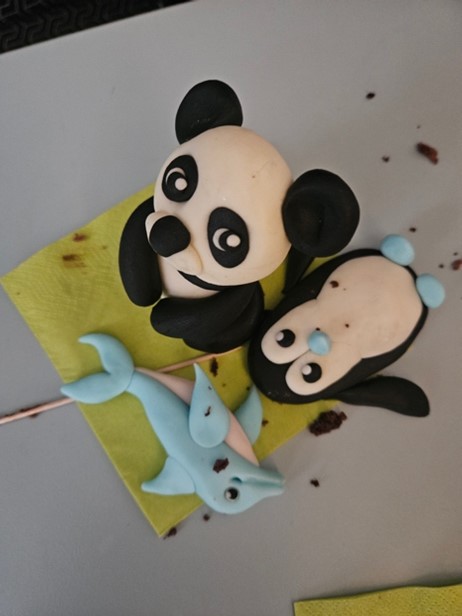 Der glückliche Schluss wurde kulinarisch untermalt durch die mit Hurrarufen willkommen geheissene Torte: Die kolossal schöne Dekoration musste freilich noch gesondert für ein Foto posieren, bevor sie im Archiv dieser Geschichte verschwand (d.h. in den Mägen der Schreiberinnen und Schreiber).
